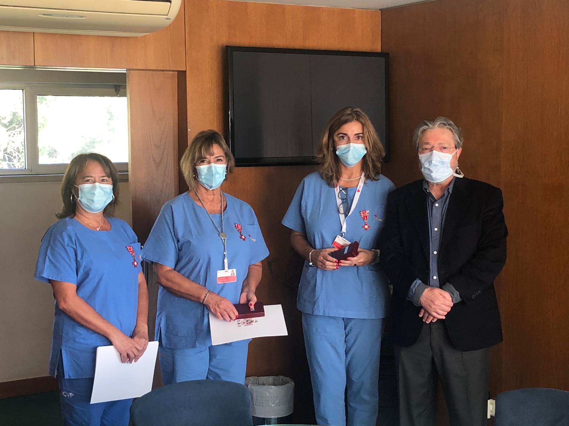 Uma vez que se avizinha o fim do ciclo da Cruz Vermelha Portuguesa na gestão do Hospital, foram hoje condecorados com a Medalha da Cruz Vermelha de Mérito, Nuno Albuquerque, Catarina Baptista, Lurdes Silva, Ana Bela Rosa e Teresa Duarte.